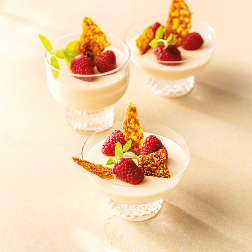 ZITRONENMOUSSE MIT HIMBEEREN UND SESAMCRACKER